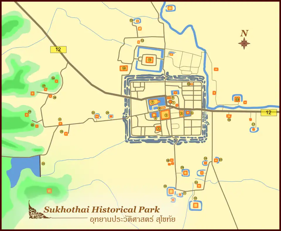 Na terenie parku znajduje się 21 obiektów historycznych wewnątrz murów Sukhotai oraz 70 poza murami[9].