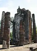 Architektura sakralna miasta charakteryzowała się zastosowaniem stożkowatych stup w kształcie pąków lotosu ustawionych na trzypoziomowej kwadratowej podstawie[9]. Niektóre budowle mają również elementy w stylu syngaleskim (stupy w kształcie dzwonów) lub stylu Śriwidźaja[9].