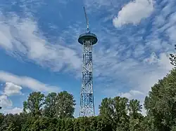 W czerwcu 1938 roku staraniem Ligi Obrony Powietrznej i Przeciwgazowej w parku T. Kościuszki wzniesiono wieżę spadochronową o wysokości 50 m. Jej projektantem był Józef Koziołek[33]. Na przełomie sierpnia i września 1939 roku stanowiła ona punkt obserwacyjny dla 73 Pułku Piechoty[36]. W pierwszych dniach II wojny światowej, po wkroczeniu do Katowic niemieckiej 239 Dywizji Piechoty, do obrony miasta przystąpiły polskie oddziały samoobrony, złożone głównie z powstańców i harcerzy. Obrońcy bronili się m.in. na wieży spadochronowej[37]. Została ona rozebrana, a po wojnie postawiono nową o wysokości 35 m[36]. Została ona odbudowana w 1951 roku z inicjatywy Ligi Lotniczej[38].