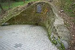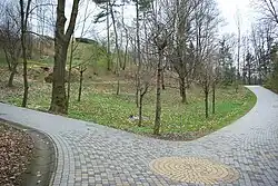 - Nieistniejący Pomnik Pamięci, ustanowiony w okresie II wojny światowej podczas okupacji niemieckiej, upamiętniający atak Niemiec na ZSRR; inskrypcja brzmiała: „Zur Erinnerung an den 22. Juni 1941 Festungs-Pionierstab 24 Vorm. Oberbaustab 33. 1940-1942”[55][56]. Na utworzonej formie pomnika została umieszczona kopuła pochodząca z sowieckiego bunkra z Krzywuli koło Leska[57]. Po wojnie, z czasem zostały usunięte metalowe litery stanowiące inskrypcję[58]. Pomnik został zlikwidowany w 1957[58].