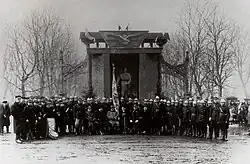 Po II wojnie światowej, na polecenie sowieckiego komendanta miasta – majora Czerkasowa środkowa część parku, dawna aleja cerkiewna, została przeznaczona na miejsce pochówku 32 oficerów sowieckich i kilku kobiet służących w wojsku[1]. Obelisk został odsłonięty 1 maja 1945 roku[1]. Przetrwał do 1990 roku, kiedy to decyzją Rady Miasta z 28 września został usunięty[1].