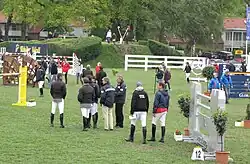 Przed rozpoczęciem konkursu skoków, jeźdźcy wchodzą na parkur i oglądają go „z ziemi”, aby zapoznać się z przebiegiem trasy oraz ewentualnymi trudnościami[2].