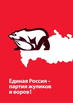 - ↑ Russia election: Hundreds rally against Putin in Moscow. BBC News, 2011-12-05. [dostęp 2015-08-24]. Cytat: „They are a party of crooks and thieves,” said popular anti-corruption blogger Alexei Navalny, who was one of those arrested in Moscow. (ang.).