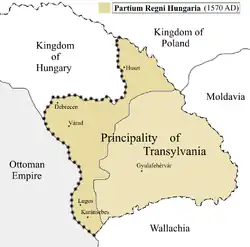 W 1570 r. Jan II Zygmunt Zápolya, syn Jana Zapolyi, porzucił pretensje do tronu węgierskiego na rzecz Maksymiliana II, który tytułował się królem Węgier już od 1563 r. Jan Zygmunt został wtedy pierwszym księciem Siedmiogrodu, z tytułem: „Joannes, serenissimi olim Joannis regis Hungariae, Dalmatiae, Croatiae etc. filius, Dei gratia princeps Transsylvaniae ac partium regni Hungariae”, od którego pochodzi nazwa „Partium” (część Królestwa Węgier).