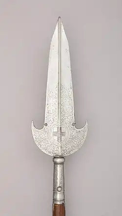 Używana na zachodzie Europy w XV wieku jako broń bojowa piechoty, w XVII wieku stała się bronią paradną: oznaką godności oficerskiej oraz bronią straży pałacowych[1].