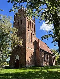 We wsi gotycki kościół z przełomu XIV i XV w., fasada wschodnia przebudowana w stylu barokowym w 1703, szczyty wolutowe. Barokowy ołtarz główny z roku 1703[7].
