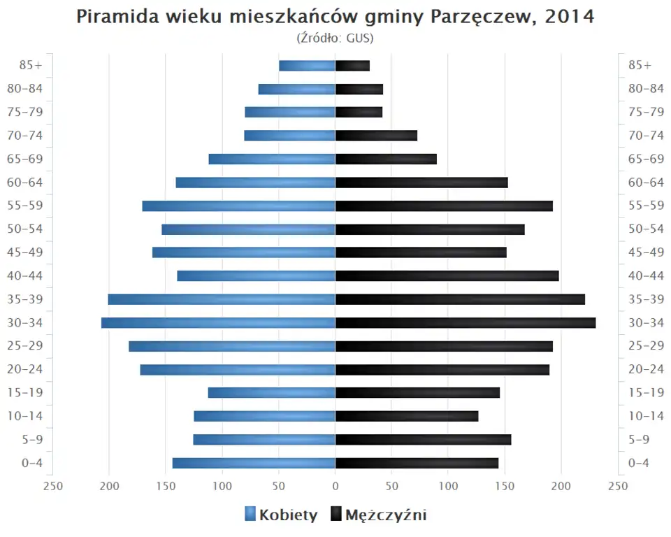 - Piramida wieku mieszkańców gminy Parzęczew w 2014 roku[1].