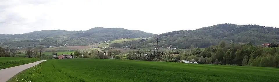 ![]() Widok na Pasmo Brzanki z wzgórz nad Tuchowem (z okolicy cmentarza wojennego nr 163) | |