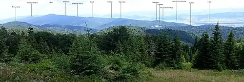 - Lubań 1211 m – na zachodnim wierzchołku wieża widokowa