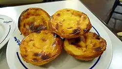 Pastéis de nata – babeczki budyniowe z ciasta francuskiego charakterystyczne dla kuchni portugalskiej, wywodzące się z lizbońskiego klasztoru hieronimitów w Belém[1]. Zakonnicy używali pierwotnie białek z kurzych jaj do krochmalenia habitów, a z niepotrzebnych żółtek zaczęto produkować babeczki i działalność ta stała się z czasem ważnym źródłem dochodów klasztoru. Po likwidacji klasztoru w 1834 r. przepis sprzedano rodzinie[2], która sprzedaje je pod zastrzeżoną nazwą pastéis de Belem w piekarni sąsiadującej z klasztorem[1].