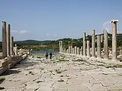 Przylegające do 18-kilometrowej plaży ruiny miasta zajmują obecnie znaczny obszar wśród wydm i pól[9]. Wśród dobrze zachowanych zabytków z czasów rzymskich wyróżnia się teatr, zbudowany za panowania Antoninusa Piusa, i łuk triumfalny Mettiusa Modestusa (zarządcy Licji i Pamfilii) z 100 n.e. oraz termy, które zgodnie z umieszczoną w nich inskrypcją, zostały wybudowane przez Wespazjana[2].