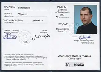 - Zobacz więcej w osobnym artykule Dawne polskie patenty żeglarskie