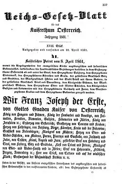 Dotychczas Kościołem panującym w monarchii Habsburgów był Kościół katolicki. W okresie józefinizmu nastąpiło częściowe równouprawnienie protestantów poprzez wydanie w 1781 Patentu tolerancyjnego, jak również oficjalnie zaczął funkcjonować Kościół ewangelicki w Cesarstwie. Kolejna fala zmian nastąpiła wraz z Wiosną Ludów w 1848. 3 do 11 sierpnia 1848 obradowała w Wiedniu komisja omawiająca położenie ewangelików w Cesarstwie. 26 grudnia 1848 nowy cesarz Franciszek Józef I wydał tymczasowe postanowienie, które zniosło część ograniczeń nałożonych na ewangelików. Przykładowo, ewangelickie metryki kościelne nabrały prawomocności, a tym samym urząd parafialny je wystawiający nabrał prawnego znaczenia wobec państwa. Drugim, ważniejszym rozporządzeniem był Patent Konstytucyjny z 4 marca 1849, który mieszkańcom państwa przyznawał zupełną wolność wyznania, które nie miało odtąd wpływu na przystęp do praw obywatelskich i politycznych. Każdy Kościół zyskał prawo publicznego nabożeństwa i do własnego samorządu, a więc przykładowo można było odtąd dobudowywać wieże do dotychczas stojących domów modlitwy. Na mocy tego patentu i rozporządzenia ministerialnego z 27 czerwca 1849, w dniu 18 sierpnia zwołano do Wiednia superintendentów z doradcami, w celu zorganizowania Kościoła ewangelickiego i ustawy kościelnej. Po przedłożeniu jej projektu w parlamencie nie została ona uprawomocniona zanim Patent Konstytucyjny z 4 marca 1849 został zniesiony 31 grudnia 1851. Jednocześnie cesarz zapewnił, że prawo do publicznych nabożeństw nie zostanie ewangelikom odebrane, po czym wydawał wobec nich pojedyncze drobne postanowienia. 11 maja 1860 zapowiedziano, że protestantom na cele i zakłady kościelne udzielać się będzie zapomogi z funduszu państwowego.