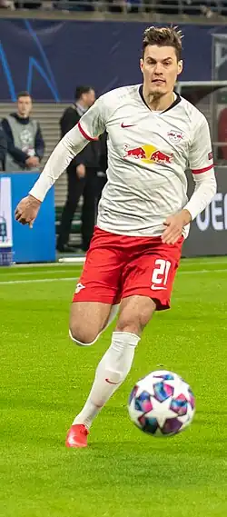 We wrześniu 2019 został wypożyczony na rok do RB Leipzig[30], w którym zadebiutował 5 października w zremisowanym 1:1 meczu z Bayerem Leverkusen[31]. W sezonie 2019/2020 rozegrał 22 mecze ligowe, w których strzelił 10 goli, ponadto 5 razy wystąpił w Lidze Mistrzów i raz w Pucharze Niemiec[32][33]. RB Leipzig zakończyło rozgrywki ligowe na trzecim miejscu z 66 punktami[34], z Ligi Mistrzów odpadło w półfinale po porażce 0:3 z PSG[35], natomiast w Pucharze Niemiec dotarło do 1/8 finału, w którym przegrało 1:3 z Eintrachtem Frankfurt[36].