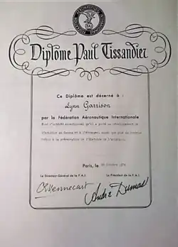 Międzynarodowy dyplom uznania za wyjątkowy wkład w dziedzinie lotnictwa. Przyznawany przez Międzynarodową Federacje Lotniczą (FAI).