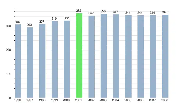 Zmiany liczby ludności w miejscowości Pavlovce od 1996 roku[9].