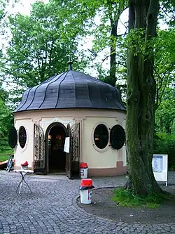- ↑ Wg tablicy informacyjnej przy pawilonie