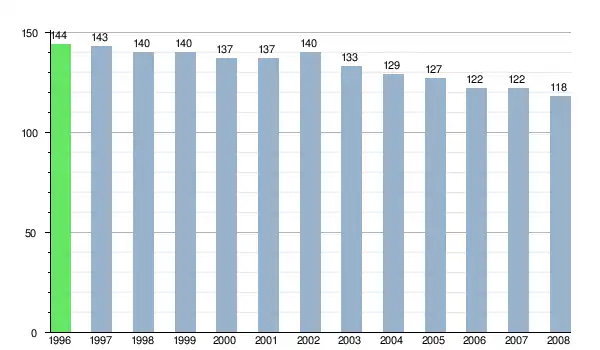 Zmiany liczby ludności w miejscowości Pečenice od 1996 roku[8].