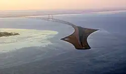 Kontury wyspy – wklęsłe i zaokrąglone – projektowano tak, by wyspa nie hamowała przepływu wody i zarazem pasowała do przebiegu zlokalizowanej na niej autostrady.