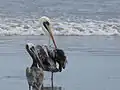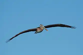 Pelikan brunatny[3] (Pelecanus occidentalis) – gatunek dużego ptaka z rodziny pelikanów (Pelecanidae). Występuje na wybrzeżach znacznej części obu Ameryk – na Pacyfiku od południowej Kanady po Peru (oraz na Galapagos), na Atlantyku od północno-wschodnich Stanów Zjednoczonych po Gujanę Francuską. Nie jest zagrożony.