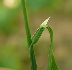 - Pochwy liściowe i blaszki szorstkie. Języczek liściowy jajowato zaokrąglony, długości 2 mm.