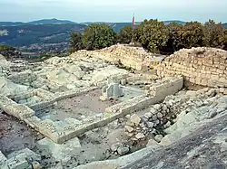 Skaliste wzgórze otaczają masywne mury fortecy[2]. Na jego szczycie znajduje się akropol, przy czym wiele odkrytych tu budynków nie zostało jeszcze zidentyfikowanych[2]. Do dziś zachowały się ich partery wykute w skale z widocznymi zagłębieniami na drzwi[2]. Pomiędzy pozostałościami budynków znajdują się ulice zachowane w bardzo dobrym stanie[2].