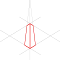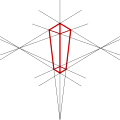 Perspektywa z trzema punktami zbiegu – efekt pojawia się, gdy będąc blisko budynku spojrzy się na jego wierzchołek. Ściany budynków widziane z bliska zdają się zbiegać pod kątem ku środkowi widzianego obrazu. Linie zbiegają się w miarę oddalania od obserwatora. Ten kierunek także podlega prawom rządzącym perspektywą. Dodatkowy, trzeci punkt zbiegu pojawia się w miejscu, gdzie przetną się linie będące przedłużeniem ścian budynku.