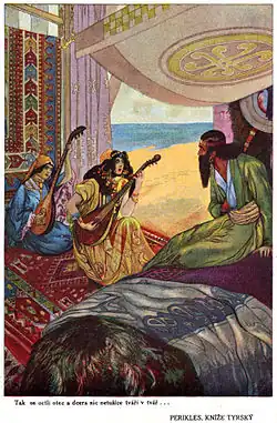 Sztuka ta opiera się na dwóch źródłach: Confessio Amantis (1393) autorstwa Johna Gowera, skąd zaczerpnięta jest historia Apoloniusza z Tyru. Drugim źródłem jest The Pattern of Painful Adventures autorstwa Lawrence Twine'a, wydana około 1576 roku. Inną, powiązaną z nimi powieścią, jest The Painful Adventures of Pericles, z roku 1608.