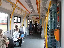 Wnętrze Twistów może być częściowo lub w pełni niskopodłogowe[35]. Przy jednych drzwiach wejściowych jest rampa wjazdowa dla podróżujących na wózkach inwalidzkich. Kolejnym ułatwieniem jest wysokość wejścia – 350 mm nad główką szyny. Przestrzeń pasażerska może być wyposażona w klimatyzację i system informacji pasażerskiej[33].
