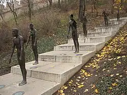 Pomnik ofiarom komunizmu znajduje się u podnóża góry niedaleko Muru Głodowego. Pomnik składa się ze schodów, na których jest kilka brązowych męskich postaci, przy czym postacie te stopniowo zanikają, co symbolizuje stopniowe wycieńczanie fizyczne i psychiczne więźniów politycznych. Na brązowym pasku przebiegającym kilkadziesiąt metrów widnieje napis Ofiary komunizmu 1948-1989: 205 486 skazano – 248 stracono – 4 500 zginęło w więzieniach – 327 zginęło na granicach – 170 938 obywateli emigrowało.