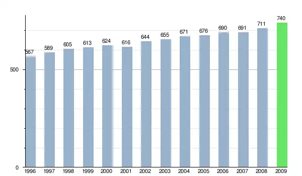 Według danych z dnia 31 grudnia 2010, wieś zamieszkiwały 763 osoby, w tym 383 kobiety i 380 mężczyzn[6].