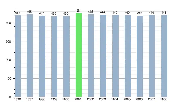 Według danych z dnia 31 grudnia 2012 roku, wieś zamieszkiwały 434 osoby, w tym 226 kobiet i 208 mężczyzn[7].