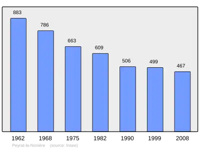 Według danych na rok 1990 gminę zamieszkiwało 506 osób, a gęstość zaludnienia wynosiła 12 osób/km² (wśród 747 gmin Limousin Peyrat-la-Nonière plasuje się na 255. miejscu pod względem liczby ludności, natomiast pod względem powierzchni na miejscu 65.).