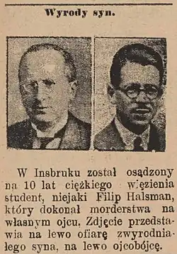 - Martin Pollack: Ojcobójca. Sprawa Filipa Halsmanna. Wołowiec: Wydawnictwo Czarne, 2008. ISBN 978-83-7536-059-2.