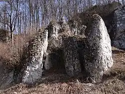 - ↑ Na podstawie tablicy informacyjnej zamontowanej przy Skałach nad Boiskiem.