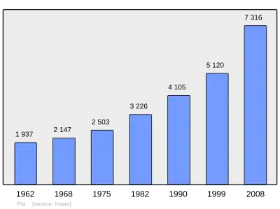 Według danych na rok 1990 gminę zamieszkiwało 4105 osób, a gęstość zaludnienia wynosiła 311 osób/km² (wśród 1545 gmin Langwedocji-Roussillon Pia plasuje się na 84. miejscu pod względem liczby ludności, natomiast pod względem powierzchni na miejscu 596.).