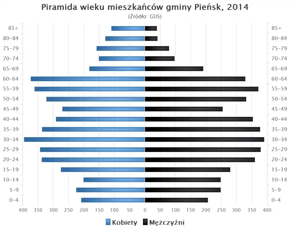 - Piramida wieku mieszkańców gminy Pieńsk w 2014 roku[1].
