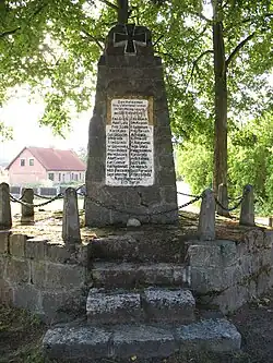 Obelisk z kamienia polnego w centrum wsi poświęcony ofiarom bitwy nad jeziorami mazurskimi 8-9 września 1914 roku. Na tablicy znajduje się napis: