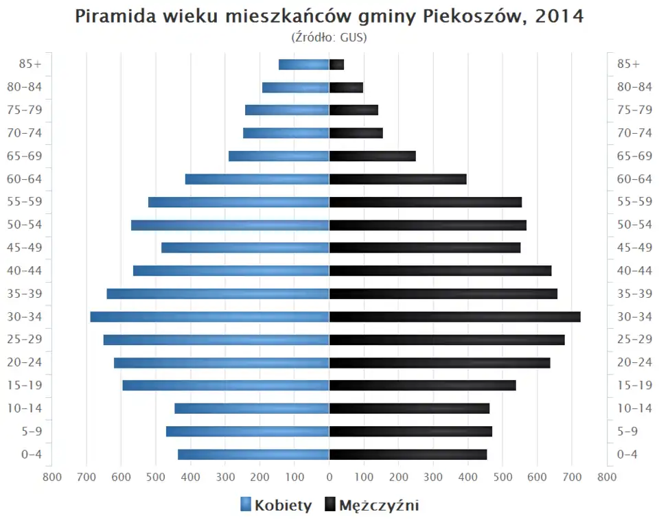 - Piramida wieku mieszkańców gminy Piekoszów w 2014 roku[7].