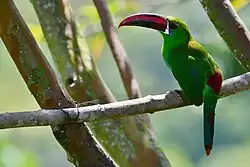 - ↑ Species factsheet: Aulacorhynchus haematopygus. BirdLife International, 2021. [dostęp 2021-08-07]. (ang.).
