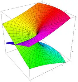 Oś rzeczywista dla wartości niedodatnich tworzy wtedy zbiór punktów rozgałęzienia. Funkcja kwadratowego pierwiastka arytmetycznego jest wszędzie holomorficzna z wyjątkiem rzeczywistych liczb niedodatnich (ściślej ujmując, dla ujemnych liczb rzeczywistych nie jest nawet ciągła). Powyższy szereg Taylora dla pozostaje słuszny dla liczb zespolonych gdzie