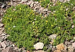 - Typowa roślina poduszkowa złożona z pojedynczych roślinek o różyczkach liściowych średnicy 1–2 cm. Poduszka wraz z kwiatami osiąga wysokość do 50 cm.