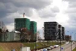 - ↑ Pierwsza Dzielnica – apartamentowce bez blichtru, z widokiem i zielenią zamiast papy na lepiku. miasto.pro, 2019-05-07. [dostęp 2023-03-31]. (pol.).