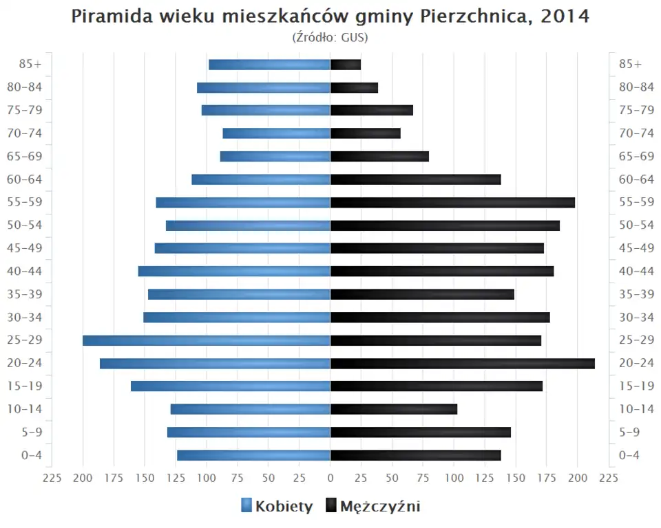 - Piramida wieku mieszkańców gminy Pierzchnica w 2014 roku[6].