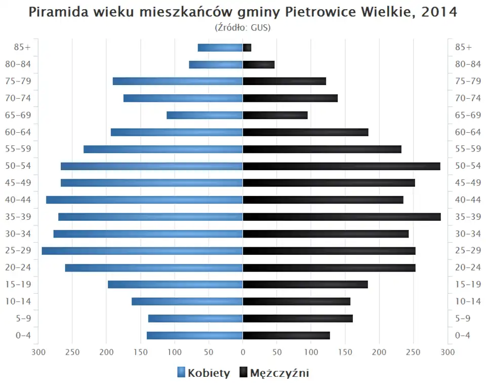 - Piramida wieku mieszkańców gminy Pietrowice Wielkie w 2014 roku[1].
