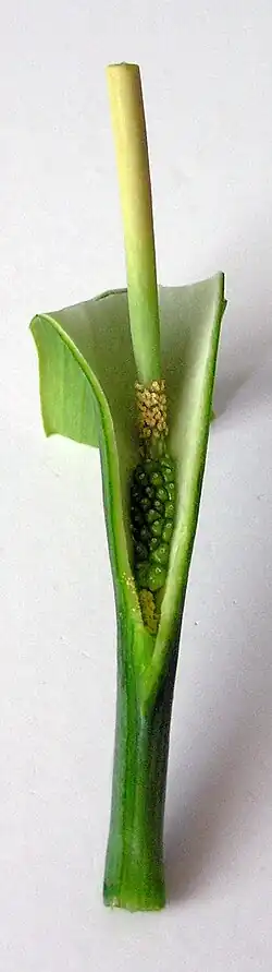 - ↑ L.I. Cabrera et al. Phylogenetics relationships of aroids and duckweeds (Araceae) inferred from coding and noncoding plastid DNA. „American Journal of Botany”. 95(9), s. 1153–1165, 2008. (ang.).