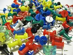 - ↑ History Of The Moore Push-Pin Company. push-pin.com. [zarchiwizowane z tego adresu (2010-02-27)].; produkowane przez tę firmę pinezki były raczej odmianą szpilek do wkłuwania w mapy.