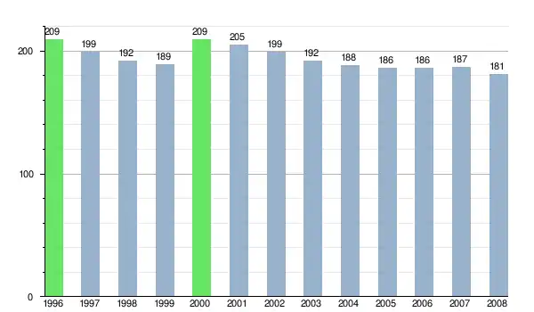 Według danych z dnia 31 grudnia 2012 roku, wieś zamieszkiwało 179 osób, w tym 96 kobiet i 83 mężczyzn[6].