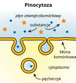 Pinocytoza – rodzaj endocytozy, sposób odżywiania wielu ameb (Amoeba), orzęsków (Ciliata) oraz wiciowców (Flagellata). Występuje także w niektórych tkankach organizmów wielokomórkowych[1]. Polega na pobieraniu ze środowiska płynu z rozpuszczonymi w nim substancjami pokarmowymi (np. białkami lub tłuszczami)[1][2]. Wskutek działania kompleksów klatryny[3] dochodzi do wpuklenia błony komórkowej, wskutek czego powstają kanaliki pinocytarne, z których każdy zakończony jest pęcherzykiem pinocytarnym[1][2][3]. Pęcherzyk ten odrywa się od błony i przemieszcza w głąb cytoplazmy, a następnie w całości trawione (włącznie z błoną) przy udziale lizosomów[1][2].