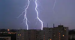 Piorun – w meteorologii bardzo silne wyładowanie elektrostatyczne w atmosferze powstające naturalnie, zwykle towarzyszące burzom. Piorunowi często towarzyszy grom dźwiękowy (grzmot) oraz zjawisko świetlne zwane błyskawicą. Może ono przybierać rozmaite kształty i rozciągłości, tworzyć linie proste lub rozgałęziać się do góry lub w dół. Występują błyskawice, które widoczne są jedynie jako rozjaśnienie powierzchni chmury, inne znów w ciągu ułamka sekundy przypominają swym kształtem świecący sznur pereł[1].